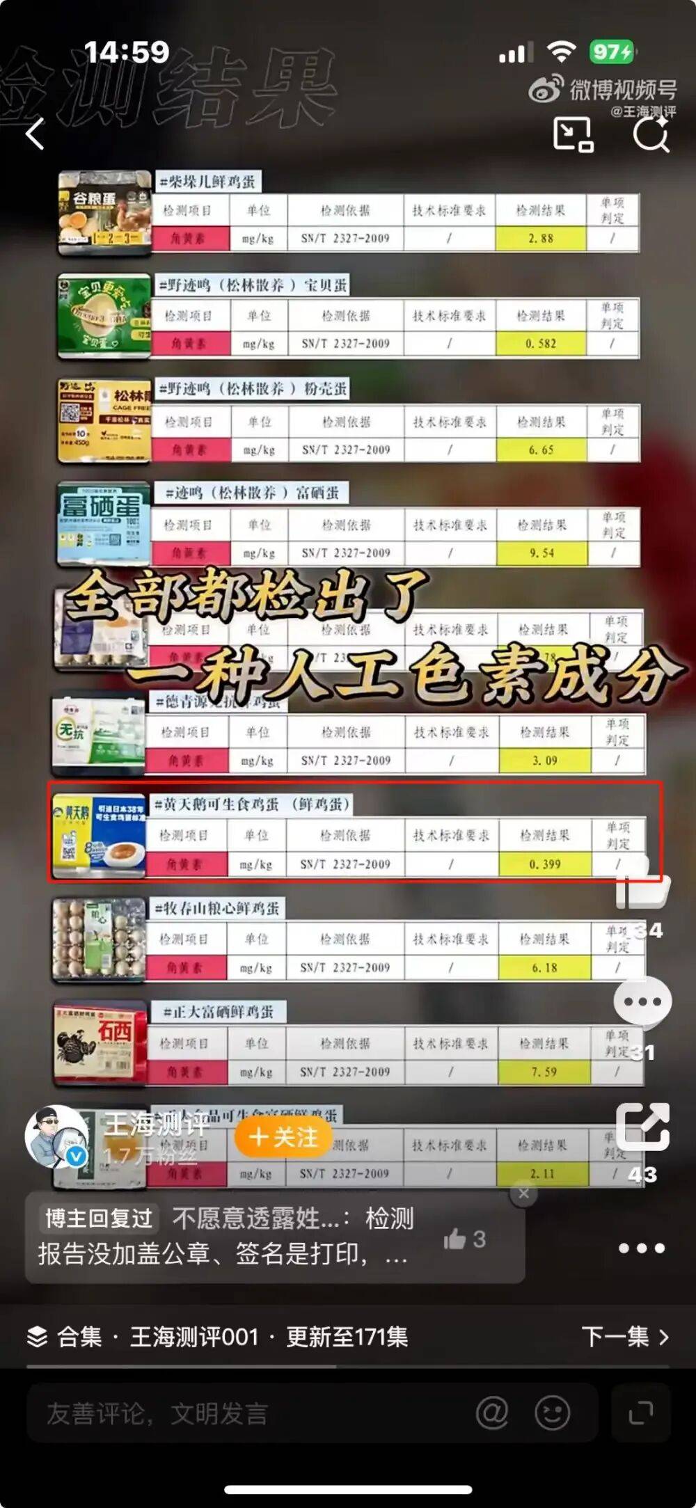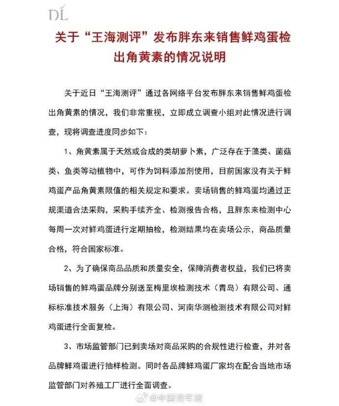 先把事务始末捋清晰,王海团队早前从胖东来线下门店采购多款鲜鸡蛋产物,委托青岛元信检测手艺无限公司出具检测演讲,据此鉴定鸡蛋存正在超标问题,曲指产物不合规。